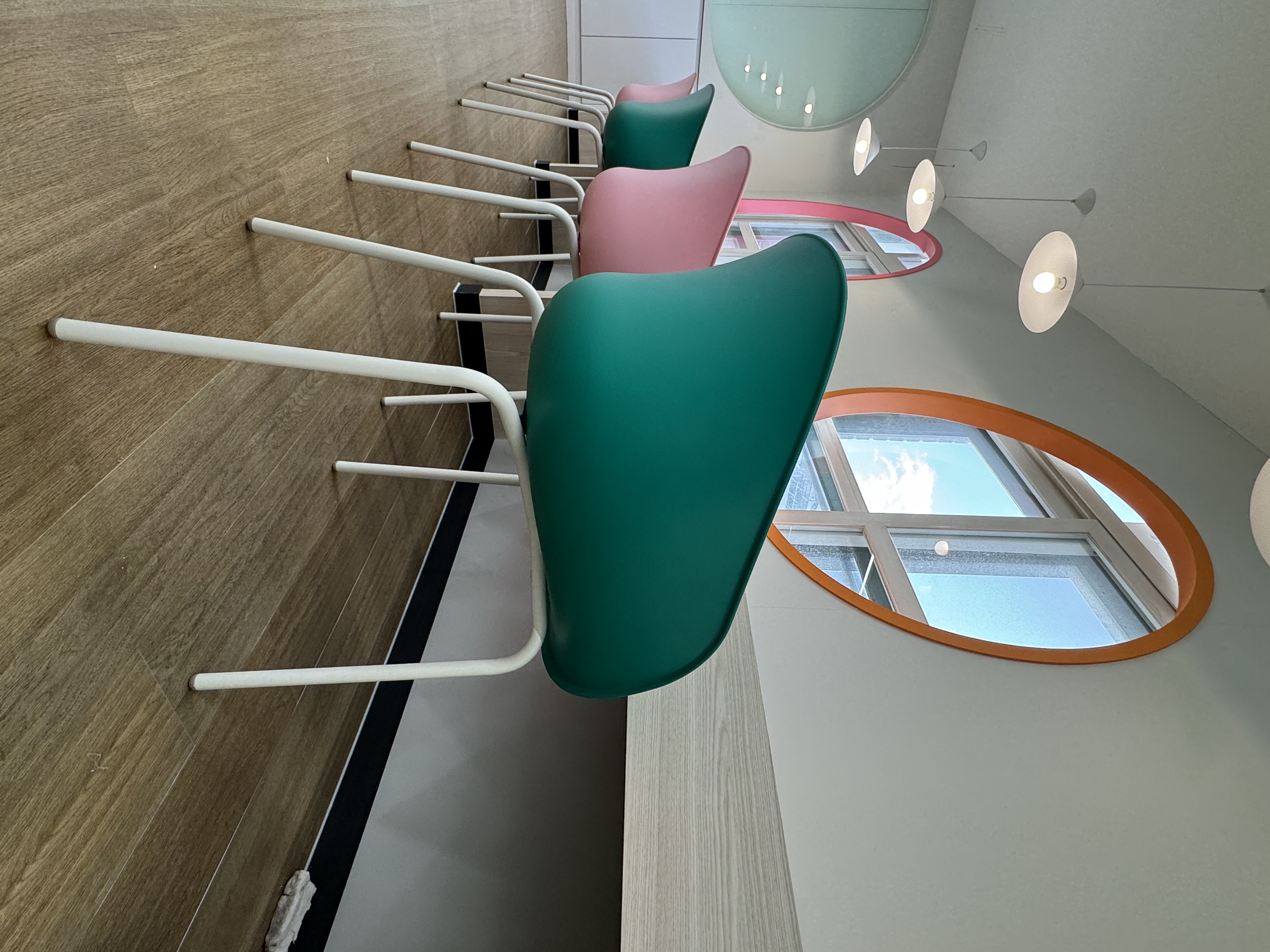 The LUMI chair can be combined with a variety of color and leg options. Soft creamy white and vivid color of green and pink can bring up the image of tropical mood, also make the interior enrich by invigorating the space. The organic curved plastic shell gives you the comfort of wrapping your body when you are seated, and makes your feel relaxing with moderate tension.
