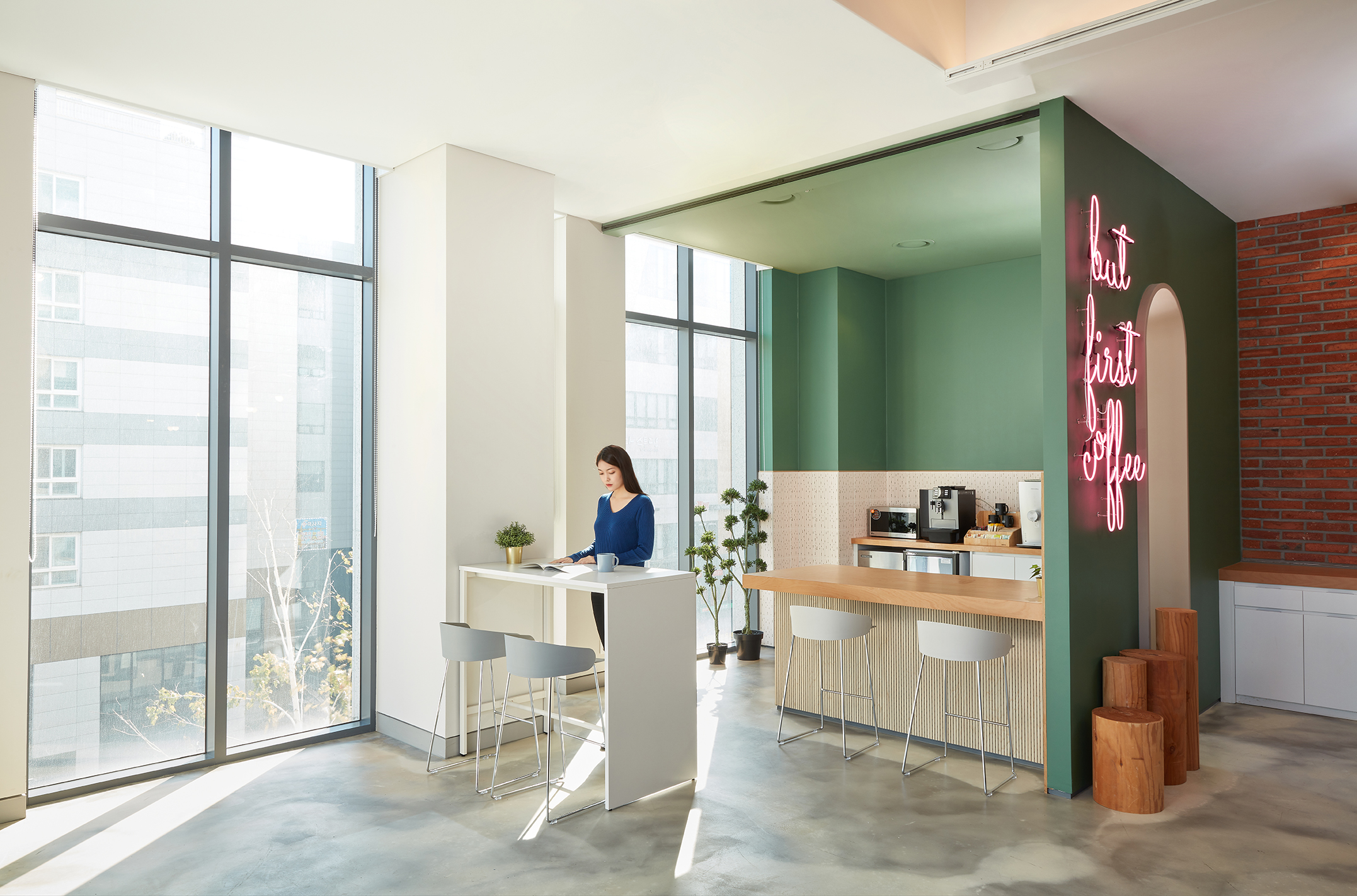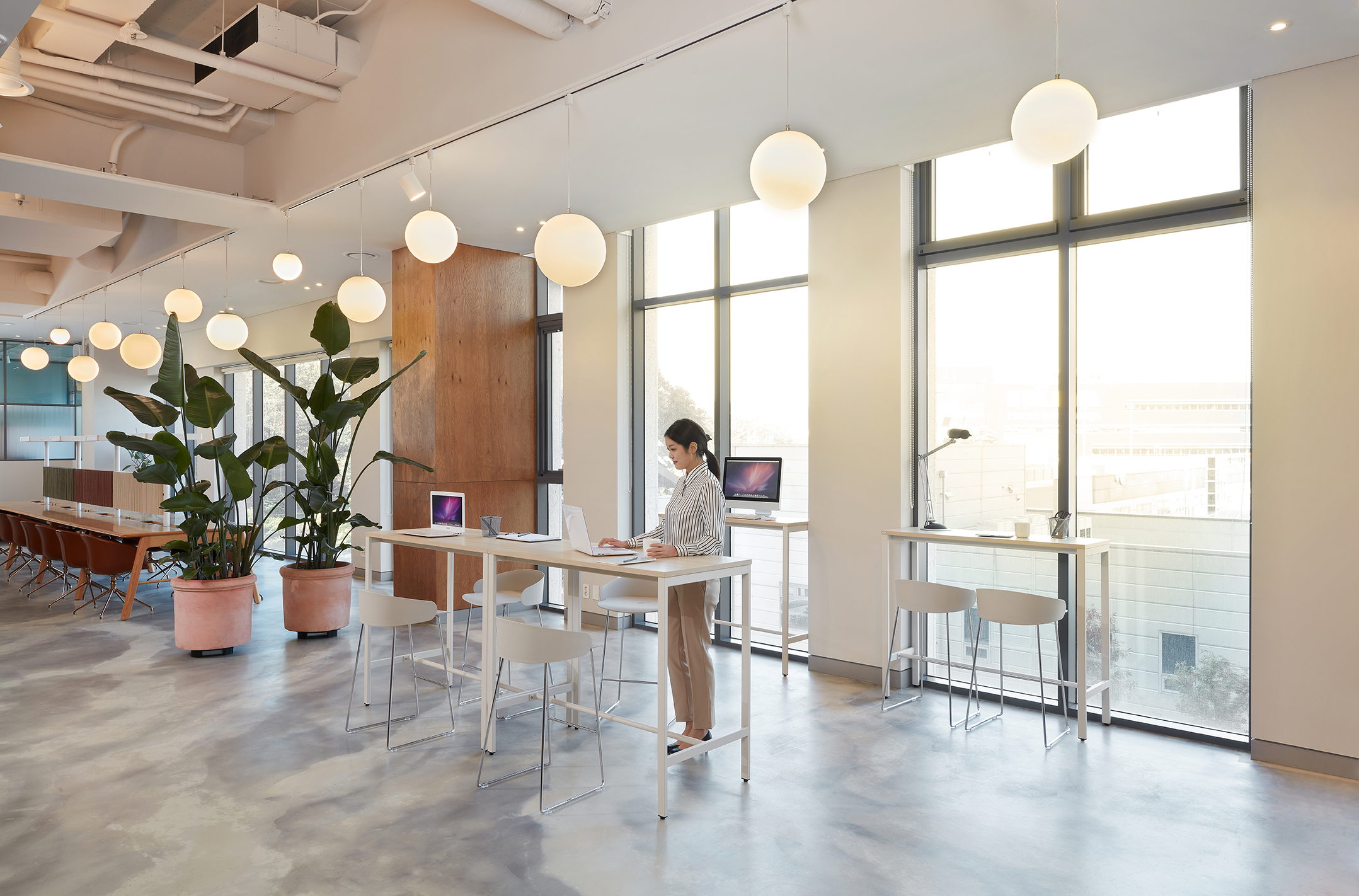Standing table solves the problem of all-day-long sitting and maximizes the work efficiency. It can be used in variety type of spaces such as office, caf?, collaborative area and touch down area. It’s height is thoughtfully designed so most suitable for every users and creates the most comfortable environment. Combination of 2 types of wood patterns and monotone colors brings sensitive elegance to your space.