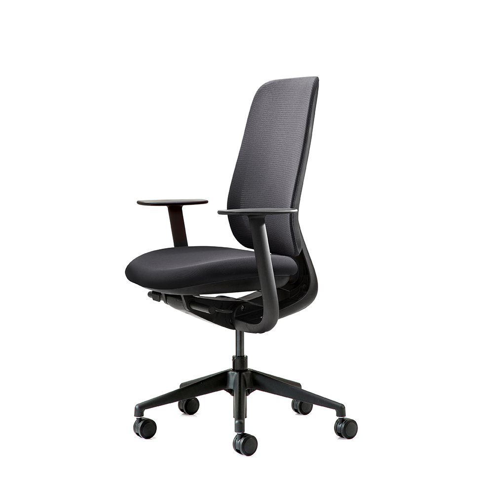 A person using the office chair continuously repeats the actions of sitting on a chair, leaning on a desk to use a PC or answer the phone and resting the upper body against a backrest while doing the work. The Libra helps minimizing the empty space behind the lumbar as the angle of the seat pan and the curvature of the backrest are automatically adjusted to the user's movement without manually manipulating them. This adaptiveness of the automatic mode supports the lumbar to maintain a natural S-curve of the user's spine and provides optimal comfort by evenly distributing the pressure on the back, waist and hips.